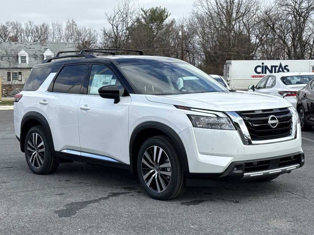 Everest White Pearl/Black 2025 Nissan Pathfinder Platinum 4WD 9-Speed Automatic 3.5L V6 DOHC 4WD.