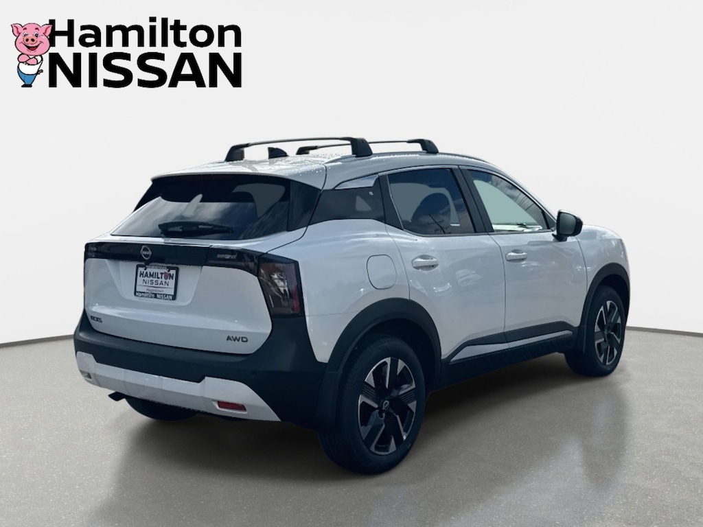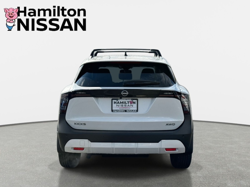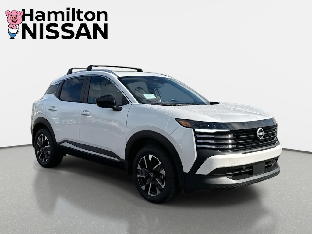 Aspen White Tricoat 2026 Nissan Kicks SV AWD CVT with Xtronic 2.0L DOHC ABS brakes, Active Cruise Control, Alloy wheels, Electronic Stability Control, Emergency communication system, Illuminated entry, Low tire pressure warning, Remote keyless entry, Traction control.