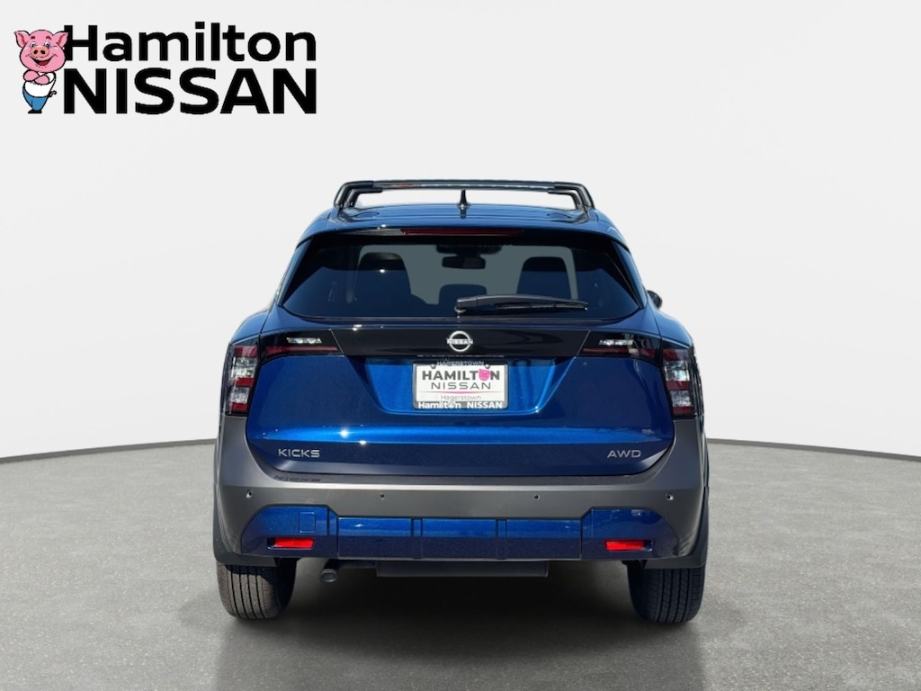 Deep Blue Pearl 2026 Nissan Kicks SV AWD CVT with Xtronic 2.0L DOHC ABS brakes, Active Cruise Control, Alloy wheels, Electronic Stability Control, Emergency communication system, Illuminated entry, Low tire pressure warning, Remote keyless entry, Traction control.