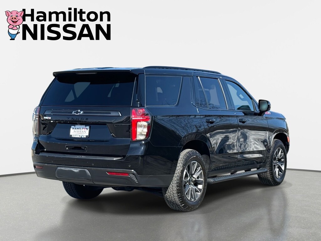 2021 Chevrolet Tahoe Z71 4WD, Push Button Start, Clean History Report - No Accidents Recorded, Cruise Control/Speed Control, Backup Camera, USB Port, AUX Port, One Owner, Bluetooth Hands Free Phone System, Bluetooth Streaming Audio, 4WD, Black Leather, 10-Way Power Driver & Passenger Seat Adjusters, 1st & 2nd Row Color-Keyed Carpeted Floor Mats, 2 USB Data Ports, 2-Speed Active Electronic AutoTrac Transfer Case, 2nd Row Manual Bucket Seats, 3rd row seats: split-bench, 4-Wheel Disc Brakes, ABS brakes, Air Conditioning, AM/FM radio: SiriusXM with 360L, Apple CarPlay/Android Auto, Auto High-beam Headlights, Auto-Dimming Inside Rear-View Mirror, Auto-dimming Rear-View mirror, Automatic temperature control, Black Tubular Assist Steps, Bose 9-Speaker Stereo Audio System Feature, Brake assist, Bright Front & Rear Door Sill Plates, Bumpers: body-color, Color-Keyed Carpeting Floor Covering, Compass, Delay-off headlights, Driver & Front Outboard Passenger Airbags, Driver door bin, Driver vanity mirror, Dual front impact airbags, Dual front side impact airbags, Dual-Pane Power Panoramic Sunroof, Electronic Stability Control, Emergency communication system: OnStar and Chevrolet connected services capable, Floor Console w/Storage Area, Four wheel independent suspension, Front anti-roll bar, Front Bucket Seats, Front Center Armrest, Front dual zone A/C, Front High-Approach Angle Fascia, Front High-Back Reclining Bucket Seats, Front reading lights, Fully automatic headlights, Garage door transmitter, Hands-Free Rear Power Programmable Liftgate, HD Radio, Heated door mirrors, Heated Driver & Front Passenger Seats, Heated front seats, Hill Descent Control, Illuminated entry, Infotainment Display, Leather Seat Trim, Leather steering wheel, Leather-Wrapped Steering Wheel, LED Daytime Running Lamps, Low tire pressure warning, Memory seat, Memory Settings for Driver, Occupant sensing airbag, Outside temperature display, Overhead airbag, Overhead console, Panic alarm, Passenger door bin, Passenger vanity mirror, Power door mirrors, Power driver seat, Power Liftgate, Power passenger seat, Power steering, Power windows, Preferred Equipment Group 2Z7, Premium audio system: Chevrolet Infotainment 3, Premium Smooth Ride Suspension, Radio: Chevrolet Infotainment 3 Plus System, Rain sensing wipers, Rear air conditioning, Rear anti-roll bar, Rear reading lights, Rear seat center armrest, Rear window defroster, Rear window wiper, Red Horizontal-Mounted Recovery Hooks, Remote keyless entry, Remote Start, Roof rack: rails only, Security system, SiriusXM Radio w/360L, Speed control, Speed-sensing steering, Split folding rear seat, Spoiler, Steering wheel mounted audio controls, Tachometer, Telescoping steering wheel, Tilt steering wheel, Traction control, Trip computer, Universal Home Remote, Variably intermittent wipers, Voltmeter, Wheels: 20" x 9" Machined Aluminum.