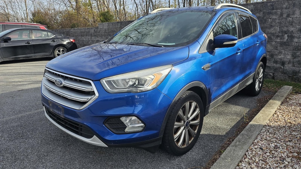 2017 Ford Escape Titanium, Push Button Start, Clean History Report - No Accidents Recorded, Cruise Control/Speed Control, Backup Camera, Local Trade, Bluetooth Hands Free Phone System, Bluetooth Streaming Audio, 10 Speakers, 4-Wheel Disc Brakes, ABS brakes, Air Conditioning, AM/FM radio: SiriusXM, Auto-dimming Rear-View mirror, Automatic temperature control, Brake assist, Bumpers: body-color, CD player, Compass, Delay-off headlights, Driver door bin, Driver vanity mirror, Dual front impact airbags, Dual front side impact airbags, Electronic Stability Control, Emergency communication system: SYNC 3 911 Assist, Equipment Group 300A, Exterior Parking Camera Rear, Four wheel independent suspension, Front anti-roll bar, Front Bucket Seats, Front Center Armrest, Front dual zone A/C, Front fog lights, Front reading lights, Fully automatic headlights, Garage door transmitter, Heated door mirrors, Heated front seats, Heated Leather-Trimmed Buckets w/60/40 Rear Seat, Illuminated entry, Knee airbag, Leather Shift Knob, Low tire pressure warning, Memory seat, Occupant sensing airbag, Outside temperature display, Overhead airbag, Overhead console, Panic alarm, Passenger door bin, Passenger vanity mirror, Power door mirrors, Power driver seat, Power Liftgate, Power passenger seat, Power steering, Power windows, Radio data system, Radio: AM/FM Single CD/MP3, Rear anti-roll bar, Rear Parking Sensors, Rear reading lights, Rear seat center armrest, Rear window defroster, Rear window wiper, Remote keyless entry, Roof rack: rails only, Security system, Speed control, Speed-sensing steering, Split folding rear seat, Steering wheel mounted audio controls, SYNC 3 Communications & Entertainment System, Tachometer, Telescoping steering wheel, Tilt steering wheel, Traction control, Trip computer, Turn signal indicator mirrors, Variably intermittent wipers, Wheels: 18" Sparkle Silver-Painted Aluminum.