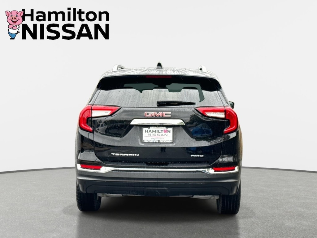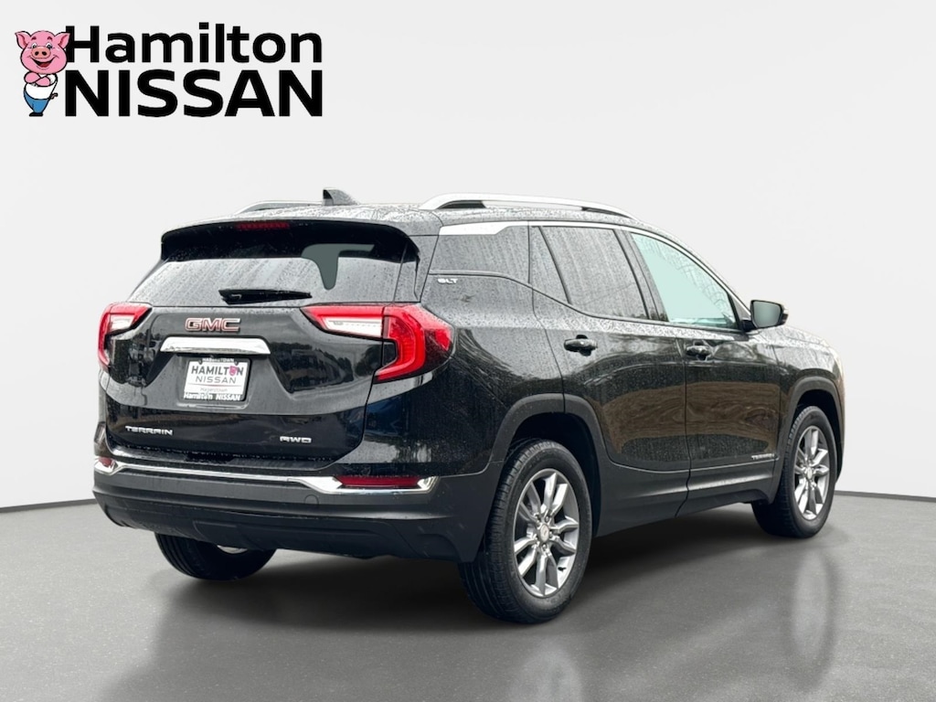 2022 GMC Terrain SLT AWD, Push Button Start, Clean History Report - No Accidents Recorded, Cruise Control/Speed Control, Backup Camera, AUX Port, Forward Collision Warning, One Owner, Lane Departure Warning, Automatic Emergency Braking w/ Pedestrian Detection, Bluetooth Hands Free Phone System, Bluetooth Streaming Audio, AWD, 2 USB Data Ports, 2 USB Data Ports w/SD Card Reader, 4-Wheel Disc Brakes, 6-Way Power Front Passenger Seat, 8-Way Power Driver Seat Adjuster, ABS brakes, Air Conditioning, Auto High-beam Headlights, Auto-dimming Rear-View mirror, Automatic temperature control, Bluetooth® For Phone, Brake assist, Bumpers: body-color, Compass, Delay-off headlights, Driver & Front Passenger Heated Seats, Driver door bin, Driver vanity mirror, Dual front impact airbags, Dual front side impact airbags, Electronic Stability Control, Emergency communication system: OnStar Guidance, Floor Liner Package (LPO), Four wheel independent suspension, Front & Rear All-Weather Floor Liners (LPO), Front anti-roll bar, Front Bucket Seats, Front Center Armrest, Front dual zone A/C, Front fog lights, Front Passenger 2-Way Power Lumbar, Front reading lights, Fully automatic headlights, Garage door transmitter, Heated door mirrors, Heated front seats, Heated steering wheel, Illuminated entry, Infotainment Package II, Integrated Cargo Liner (LPO), Lane Departure Warning System, Low tire pressure warning, Memory seat, Occupant sensing airbag, Outside temperature display, Overhead airbag, Overhead console, Panic alarm, Passenger door bin, Passenger vanity mirror, Perforated Leather-Appointed Seat Trim, Power door mirrors, Power Driver Lumbar Control, Power driver seat, Power Liftgate, Power passenger seat, Power steering, Power windows, Preferred Equipment Group 4SA, Premium 7-Speaker Bose Sound System w/Amplifier, Radio: GMC Infotainment Audio System w/Navigation, Rear anti-roll bar, Rear seat center armrest, Rear window defroster, Rear window wiper, Remote keyless entry, Roof rack: rails only, Security system, SiriusXM Radio, Speed control, Speed-sensing steering, Split folding rear seat, Spoiler, Steering wheel mounted audio controls, Tachometer, Telescoping steering wheel, Tilt steering wheel, Traction control, Trip computer, Turn signal indicator mirrors, Variably intermittent wipers, Wheels: 18" x 7" Silver Painted Aluminum, Wireless Apple CarPlay/Wireless Android Auto.
