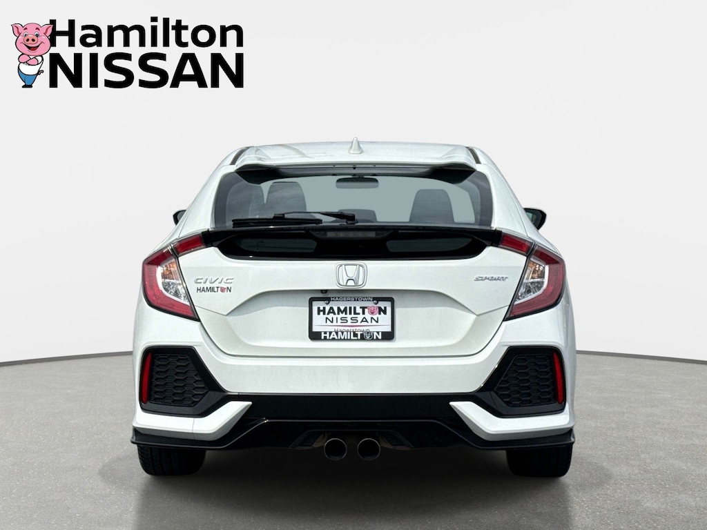 2018 Honda Civic Sport, Cruise Control/Speed Control, USB Port, AUX Port, Local Trade, Bluetooth Hands Free Phone System, Bluetooth Streaming Audio, Black Cloth, 4 Speakers, 4-Wheel Disc Brakes, ABS brakes, Air Conditioning, AM/FM radio, Automatic temperature control, Brake assist, Bumpers: body-color, Compass, Delay-off headlights, Driver door bin, Driver vanity mirror, Dual front impact airbags, Dual front side impact airbags, Electronic Stability Control, Exterior Parking Camera Rear, Fabric Seating Surfaces, Four wheel independent suspension, Front anti-roll bar, Front Bucket Seats, Front Center Armrest, Front fog lights, Front reading lights, Fully automatic headlights, Illuminated entry, Leather Shift Knob, Low tire pressure warning, Occupant sensing airbag, Outside temperature display, Overhead airbag, Panic alarm, Passenger door bin, Passenger vanity mirror, Power door mirrors, Power steering, Power windows, Radio data system, Radio: 160-Watt AM/FM Audio System, Rear anti-roll bar, Rear seat center armrest, Rear window defroster, Rear window wiper, Reclining Front Bucket Seats, Remote keyless entry, Security system, Speed control, Speed-sensing steering, Split folding rear seat, Spoiler, Steering wheel mounted audio controls, Tachometer, Telescoping steering wheel, Tilt steering wheel, Traction control, Trip computer.