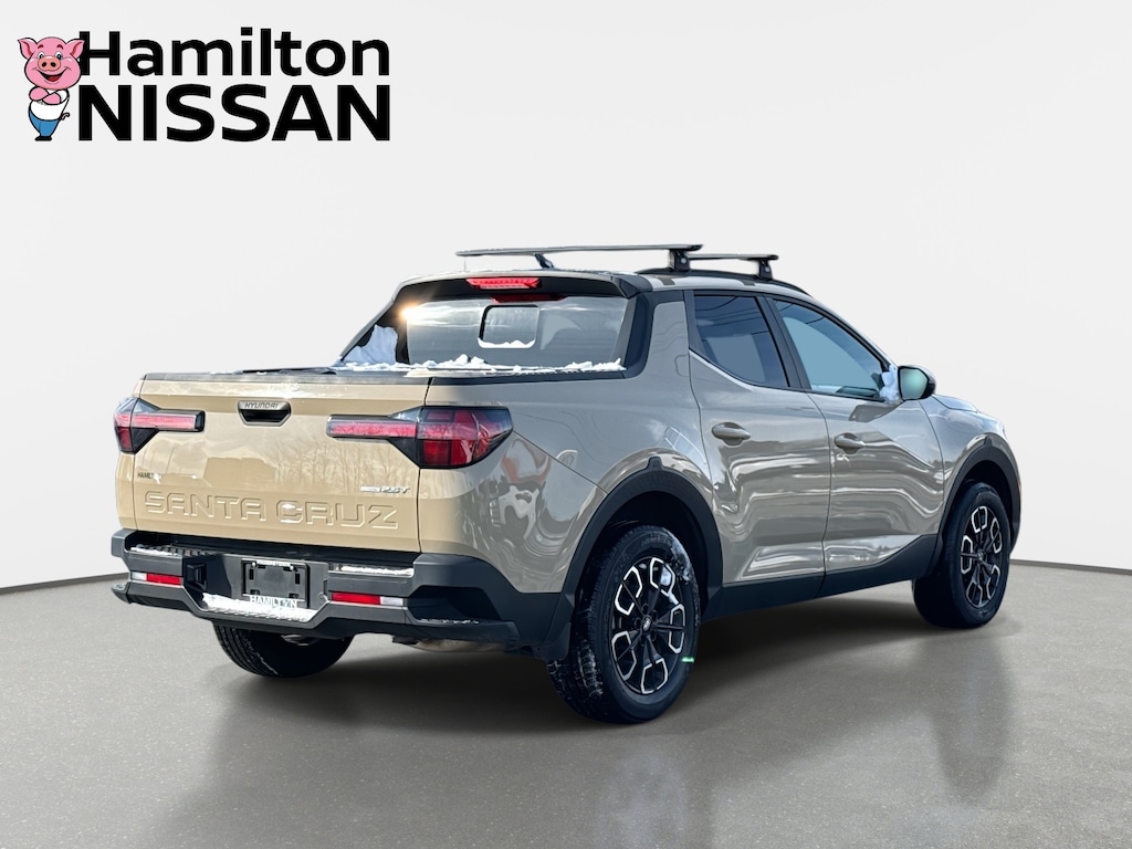 2023 Hyundai Santa Cruz SEL AWD, Premium Push Button Start, Cruise Control/Speed Control, Backup Camera, USB Port, AUX Port, Forward Collision Warning, Rear Cross Traffic Alert, Lane Departure Warning, Blind Spot Warning, Rear Automatic Braking, Automatic Emergency Braking w/ Pedestrian Detection, Bluetooth Hands Free Phone System, Bluetooth Streaming Audio, Remote Engine Start, 18" x 7.5J Alloy Wheels, 3.316 Axle Ratio, 4-Wheel Disc Brakes, 6 Speakers, ABS brakes, Air Conditioning, AM/FM radio: SiriusXM, Apple CarPlay & Android Auto, Auto High-beam Headlights, Auto-dimming Rear-View mirror, Auto-leveling suspension, Automatic temperature control, Brake assist, Bumpers: body-color, Carpeted Floor Mats, Delay-off headlights, Driver door bin, Driver vanity mirror, Dual front impact airbags, Dual front side impact airbags, Electronic Stability Control, Emergency communication system: Blue Link Connected Car Service (3-year complimentary subscription), Exterior Parking Camera Rear, Four wheel independent suspension, Front anti-roll bar, Front Bucket Seats, Front Center Armrest, Front dual zone A/C, Front reading lights, Fully automatic headlights, Heated door mirrors, Heated Front Bucket Seats, Heated front seats, Illuminated entry, Leather Shift Knob, Low tire pressure warning, Mudguards, Occupant sensing airbag, Option Group 01, Outside temperature display, Overhead airbag, Overhead console, Panic alarm, Passenger door bin, Passenger vanity mirror, Power door mirrors, Power driver seat, Power moonroof, Power steering, Power windows, Radio data system, Radio: AM/FM/HD Audio System, Rear anti-roll bar, Rear step bumper, Rear window defroster, Remote keyless entry, Roof Rack Cross Rails, Security system, Speed control, Speed-sensing steering, Split folding rear seat, Spoiler, Stain & Odor Resistant Cloth Seat Trim, Steering wheel mounted audio controls, Tachometer, Telescoping steering wheel, Tilt steering wheel, Traction control, Trip computer, Turn signal indicator mirrors, Variably intermittent wipers.