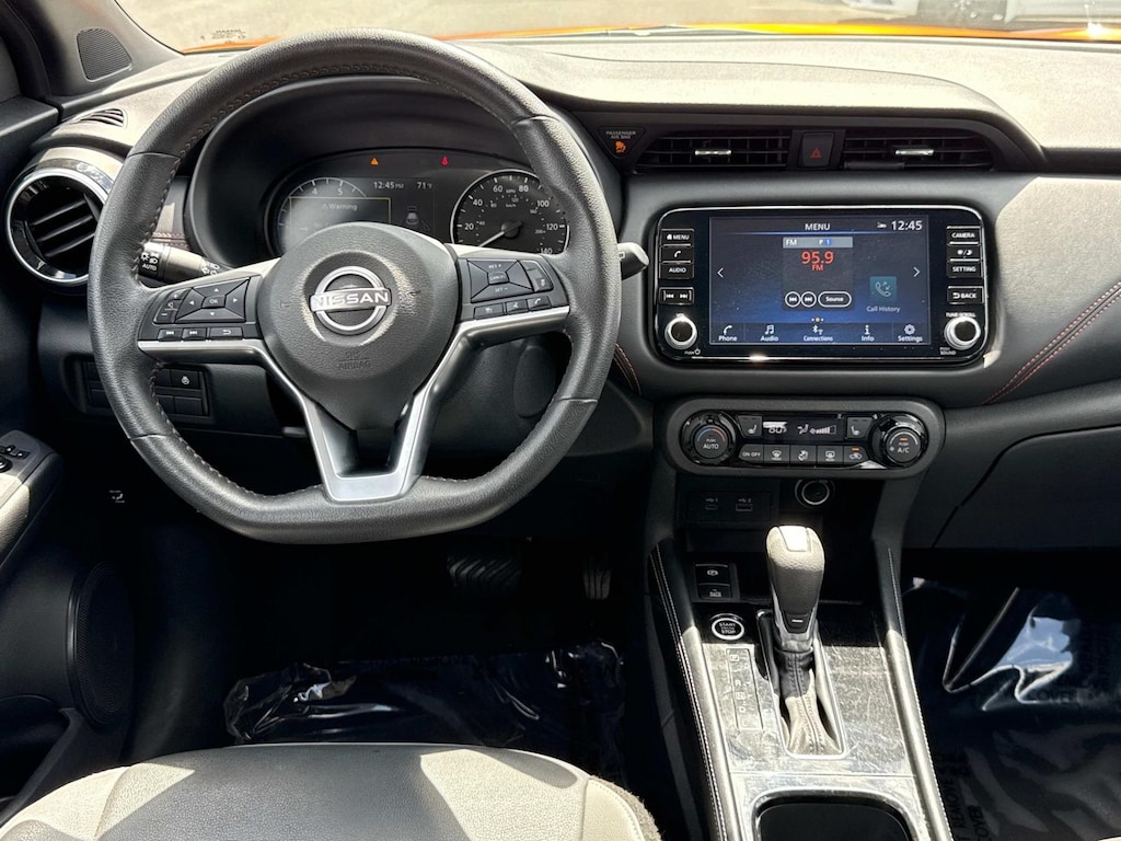 2023 Nissan Kicks SR Premium, Push Button Start, Clean History Report - No Accidents Recorded, Cruise Control/Speed Control, Backup Camera, USB Port, AUX Port, Forward Collision Warning, Rear Cross Traffic Alert, One Owner, Lane Departure Warning, Blind Spot Warning, Rear Automatic Braking, Automatic Emergency Braking w/ Pedestrian Detection, Bluetooth Hands Free Phone System, Bluetooth Streaming Audio, Remote Engine Start, 4-Wheel Disc Brakes, 6 Speakers, ABS brakes, Air Conditioning, AM/FM radio: SiriusXM, Apple CarPlay/Android Auto, Auto High-beam Headlights, Automatic temperature control, Blind Spot Warning, Bose Personal Plus Audio System, Brake assist, Bumpers: body-color, Carpeted Floor Mats w/Cargo Mat, Cloth Seat Trim, Delay-off headlights, Door Pocket Light, Driver door bin, Driver vanity mirror, Dual front impact airbags, Dual front side impact airbags, Electronic Stability Control, Exterior Parking Camera Rear, Frameless Auto-Dimming Mirror, Front anti-roll bar, Front Bucket Seats, Front Center Armrest, Front fog lights, Front reading lights, Front wheel independent suspension, Fully automatic headlights, Heated door mirrors, Heated Front Seats, Heated Steering Wheel, Illuminated entry, Interior Ambient Lighting, Interior Electronics Package, Knee airbag, Low tire pressure warning, NissanConnect Services, Occupant sensing airbag, Outside temperature display, Overhead airbag, Panic alarm, Passenger door bin, Passenger vanity mirror, Power door mirrors, Power steering, Power windows, Prima-Tex Appointed Seat Trim, Radio data system, Radio: AM/FM Audio System, Rear Parking Sensors, Rear reading lights, Rear Roof Spoiler Credit, Rear side impact airbag, Rear window defroster, Rear window wiper, Remote keyless entry, Security System, Speed control, Splash Guards Grain (4 Piece), Split folding rear seat, Sport steering wheel, SR Premium Package, Steering wheel mounted audio controls, Tachometer, Technology Package, Telescoping steering wheel, Tilt steering wheel, Tonneau Cover, Traction control, Trip computer, Turn signal indicator mirrors, Universal Remote, Variably intermittent wipers, Wheels: 17" Black Alloy.