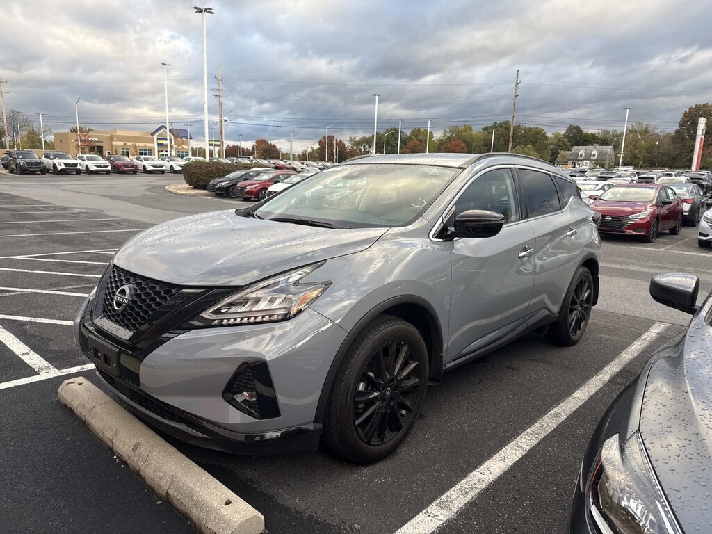 2024 Nissan Murano SV Midnight Edition AWD, Push Button Start, Clean History Report - No Accidents Recorded, Cruise Control/Speed Control, Backup Camera, USB Port, AUX Port, Forward Collision Warning, Rear Cross Traffic Alert, Intelligent Cruise Control, One Owner, Lane Departure Warning, Blind Spot Warning, Rear Automatic Braking, Automatic Emergency Braking w/ Pedestrian Detection, Bluetooth Hands Free Phone System, Bluetooth Streaming Audio, CVT with Xtronic, AWD, 4-Wheel Disc Brakes, 6 Speakers, ABS brakes, Air Conditioning, AM/FM radio: SiriusXM, AM/FM/CD/MP3/WMA Audio System, Auto High-beam Headlights, Auto-dimming Rear-View mirror, Automatic temperature control, Black Splash Guards, Blind Spot Warning, Brake assist, Bumpers: body-color, CD player, Child-Seat-Sensing Airbag, Compass, Delay-off headlights, Driver door bin, Driver vanity mirror, Dual front impact airbags, Dual front side impact airbags, Electronic Stability Control, Four wheel independent suspension, Front anti-roll bar, Front Bucket Seats, Front Center Armrest, Front dual zone A/C, Front fog lights, Front reading lights, Fully automatic headlights, Heated door mirrors, Heated Front Bucket Seats, Heated front seats, Illuminated entry, Illuminated Kickplates, Knee airbag, Leather steering wheel, Leatherette-Appointed Seat Trim, Low tire pressure warning, Midnight Edition Badge, Midnight Edition Carpeted Floor Mats, NissanConnect featuring Apple CarPlay and Android Auto, Occupant sensing airbag, Outside temperature display, Overhead airbag, Overhead console, Panic alarm, Passenger door bin, Passenger vanity mirror, Power door mirrors, Power driver seat, Power passenger seat, Power steering, Power windows, Radio data system, Rear anti-roll bar, Rear reading lights, Rear seat center armrest, Rear side impact airbag, Rear window defroster, Rear window wiper, Remote keyless entry, Security system, Speed control, Speed-sensing steering, Speed-Sensitive Wipers, Splash Guards & Illuminated Kick Plates, Split folding rear seat, Spoiler, Steering wheel mounted audio controls, SV Midnight Edition Package, Tachometer, Telescoping steering wheel, Tilt steering wheel, Traction control, Trip computer, Turn signal indicator mirrors, Variably intermittent wipers, Wheels: 20" Gloss Black Aluminum Alloy.