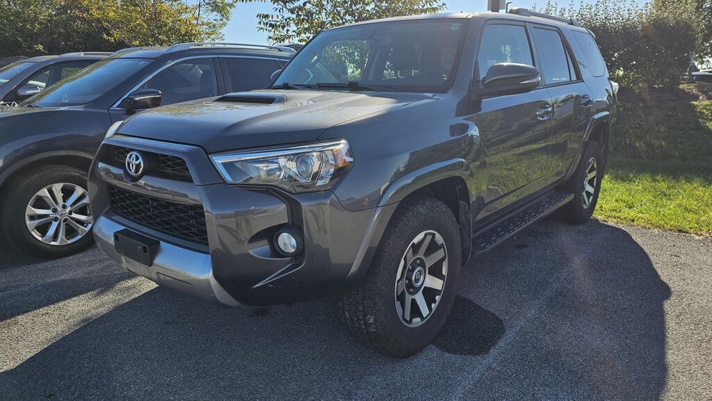 2019 Toyota 4Runner TRD Off-Road Premium 4WD, Push Button Start, Clean History Report - No Accidents Recorded, Cruise Control/Speed Control, Backup Camera, USB Port, AUX Port, Local Trade, Bluetooth Hands Free Phone System, Bluetooth Streaming Audio, 4WD, 4-Wheel Disc Brakes, 8 Speakers, ABS brakes, Air Conditioning, All-Weather Floor Liners/Cargo Tray Package, AM/FM radio: SiriusXM, Anti-whiplash front head restraints, Auto-Dimming Rear-View Mirror, Auto-dimming Rear-View mirror, Black Roof Rails, Body Color Heated Mirrors, Brake assist, Bumpers: body-color, CD player, Compass, Driver door bin, Driver vanity mirror, Dual front impact airbags, Dual front side impact airbags, Electronic Stability Control, Emergency communication system: Safety Connect, Exterior Parking Camera Rear, Front anti-roll bar, Front Bucket Seats, Front Center Armrest, Front fog lights, Front reading lights, Front wheel independent suspension, Garage Door Opener, Garage door transmitter: HomeLink, Heated door mirrors, Heated Front Bucket Seats, Heated front seats, Illuminated entry, Knee airbag, Leather Shift Knob, Low tire pressure warning, Moonroof w/Tilt Up & Slide, Navigation System, Occupant sensing airbag, Off Road Premium Package w/Softex, Outside temperature display, Overhead airbag, Overhead console, Panic alarm, Passenger door bin, Passenger vanity mirror, Power door mirrors, Power driver seat, Power passenger seat, Power steering, Power Tilt/Slide Moonroof w/Sunshade, Power windows, Radio: Entune Premium Audio w/Navigation, Rear anti-roll bar, Rear seat center armrest, Rear window defroster, Rear window wiper, Remote keyless entry, Roof rack: rails only, Running Boards, Security system, Softex Synthetic Leather Seat Trim, Speed control, Speed-sensing steering, Split folding rear seat, Spoiler, Steering wheel mounted audio controls, Tachometer, Telescoping steering wheel, Tilt steering wheel, Traction control, Trip computer, Turn signal indicator mirrors, Variably intermittent wipers, Wheels: 17" x 7.5" 7-Spoke Unique Off-Road Alloy.