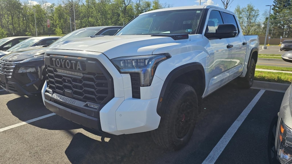 2022 Toyota Tundra Hybrid TRD Pro 4WD, Push Button Start, Clean History Report - No Accidents Recorded, Cruise Control/Speed Control, Backup Camera, USB Port, AUX Port, Forward Collision Warning, Rear Cross Traffic Alert, Lane Departure Warning, Blind Spot Warning, Rear Automatic Braking, Automatic Emergency Braking w/ Pedestrian Detection, Bluetooth Hands Free Phone System, Bluetooth Streaming Audio, 3.4L V6, 12 Speakers, 4-Wheel Disc Brakes, 400W/120V AC Rear Seat & Bed Power Supply, ABS brakes, Air Conditioning, AM/FM radio: SiriusXM, Apple CarPlay/Android Auto, Auto High-beam Headlights, Auto-dimming door mirrors, Auto-dimming Rear-View mirror, Automatic temperature control, Black Dual Exhaust Tips w/Debossed TRD Pro Logo, Brake assist, Bumpers: body-color, Color-Keyed Outside Mirrors, Delay-off headlights, Driver door bin, Driver vanity mirror, Dual front impact airbags, Dual front side impact airbags, Electronic Stability Control, Emergency communication system: Safety Connect with 1-year trial, Front & Rear Mud Guards, Front anti-roll bar, Front Bucket Seats, Front Center Armrest, Front dual zone A/C, Front fog lights, Front reading lights, Front wheel independent suspension, Fully automatic headlights, Garage door transmitter: HomeLink, Heated & Ventilated Front Bucket Seats, Heated door mirrors, Heated front seats, Heated steering wheel, Illuminated entry, Knee airbag, Leather Shift Knob, LED Lightbar w/Fog & Marker Lights, Low tire pressure warning, Memory seat, Multi-Terrain Back Monitor, Navigation System, Occupant sensing airbag, Outside temperature display, Overhead airbag, Overhead console, Panic alarm, Panoramic View Back Monitor, Passenger door bin, Passenger vanity mirror, Power door mirrors, Power driver seat, Power moonroof, Power Panoramic Roof, Power passenger seat, Power steering, Power windows, Qi-Compatible Wireless Smartphone Charger, Radio data system, Radio: Audio Plus, Rear reading lights, Rear seat center armrest, Rear step bumper, Rear window defroster, Remote keyless entry, Security system, Smoked-Finish Premium LED Headlights & DRL, SofTex Seat Trim, Speed control, Speed-sensing steering, Split folding rear seat, Sport steering wheel, Steering wheel mounted audio controls, Tachometer, Telescoping steering wheel, Tilt steering wheel, Towing Technology Package, Traction control, TRD Pro Heated Leather-Trimmed Steering Wheel, Trip computer, Turn signal indicator mirrors, Variably intermittent wipers, Ventilated front seats, Voltmeter, Wheels: 18" x 8" Black BBS Forged Aluminum.