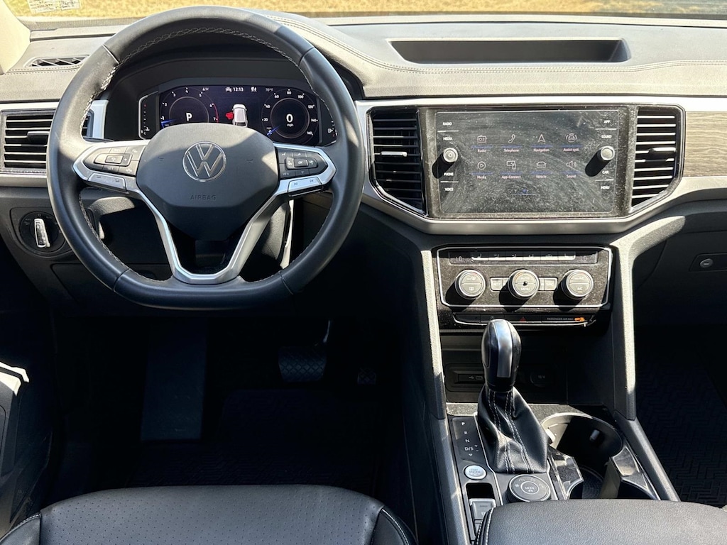 2022 Volkswagen Atlas 3.6L V6 SE w/Technology AWD, Push Button Start, Cruise Control/Speed Control, Backup Camera, USB Port, AUX Port, One Owner, Bluetooth Hands Free Phone System, Bluetooth Streaming Audio, 3rd row seats: split-bench, 4-Wheel Disc Brakes, 6 Speakers, ABS brakes, Air Conditioning, AM/FM radio: SiriusXM with 360L, Auto-dimming Rear-View mirror, Automatic temperature control, Brake assist, Bumpers: body-color, Compass, Delay-off headlights, Driver door bin, Driver vanity mirror, Dual front impact airbags, Dual front side impact airbags, Electronic Stability Control, Emergency communication system, Exterior Parking Camera Rear, Four wheel independent suspension, Front anti-roll bar, Front Bucket Seats, Front Center Armrest, Front dual zone A/C, Front fog lights, Front reading lights, Fully automatic headlights, Heated Comfort Front Bucket Seats, Heated door mirrors, Heated front seats, Illuminated entry, Leather Shift Knob, Low tire pressure warning, Occupant sensing airbag, Outside temperature display, Overhead airbag, Overhead console, Panic alarm, Passenger door bin, Passenger vanity mirror, Perforated V-Tex Leatherette Seating Surfaces, Power door mirrors, Power driver seat, Power Liftgate, Power steering, Power windows, Radio data system, Radio: MIB3 Composition Media w/8" Touchscreen, Rain sensing wipers, Rear air conditioning, Rear anti-roll bar, Rear reading lights, Rear seat center armrest, Rear window defroster, Rear window wiper, Remote keyless entry, Roof rack: rails only, Security system, Speed control, Speed-sensing steering, Split folding rear seat, Spoiler, Standard Suspension, Steering wheel mounted audio controls, Tachometer, Telescoping steering wheel, Tilt steering wheel, Traction control, Trip computer, Turn signal indicator mirrors, Variably intermittent wipers, Wheels: 20" x 8J 5-Spoke Silver Painted Alloy.