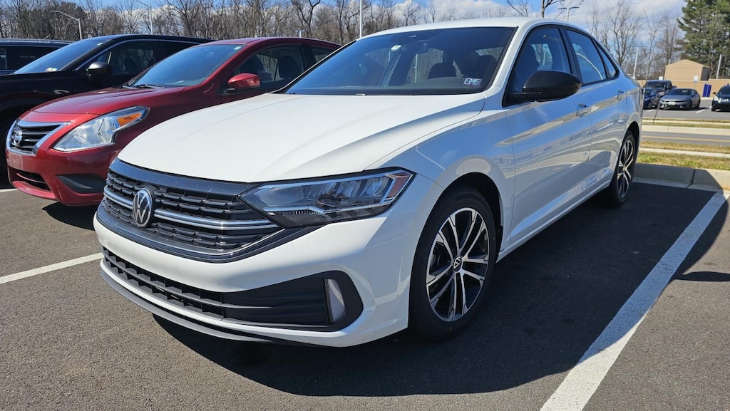 2024 Volkswagen Jetta 1.5T Sport, Push Button Start, Cruise Control/Speed Control, Backup Camera, USB Port, AUX Port, Forward Collision Warning, One Owner, Local Trade, Blind Spot Warning, Rear Automatic Braking, Automatic Emergency Braking w/ Pedestrian Detection, Bluetooth Hands Free Phone System, Black Cloth, 4 Speakers, 4-Wheel Disc Brakes, ABS brakes, Active Blind Spot Monitor, Air Conditioning, Auto-dimming Rear-View mirror, Brake assist, Bumpers: body-color, Cloth Seat Trim, Delay-off headlights, Driver door bin, Driver vanity mirror, Dual front impact airbags, Dual front side impact airbags, Electronic Stability Control, Emergency communication system: VW Car-Net Safe & Secure 5-year, Exterior Parking Camera Rear, First Aid Kit, Front anti-roll bar, Front Bucket Seats, Front Center Armrest, Front wheel independent suspension, Fully automatic headlights, Heated door mirrors, Heated Front Seats, Heated front seats, Heavy Duty Trunk Liner w/VW CarGo Blocks, Illuminated entry, Leather Shift Knob, Leather steering wheel, Low tire pressure warning, Occupant sensing airbag, Outside temperature display, Overhead airbag, Overhead console, Panic alarm, Passenger door bin, Passenger vanity mirror, Power door mirrors, Power steering, Power windows, Radio data system, Radio: MIB3 Composition Color w/6.5" Touchscreen, Rain sensing wipers, Rear anti-roll bar, Rear reading lights, Rear seat center armrest, Rear window defroster, Remote keyless entry, Roadside Assistance Kit, Rubber Monster Mats Kit (Set of 4), Speed control, Speed-sensing steering, Split folding rear seat, Steering wheel mounted audio controls, Tachometer, Telescoping steering wheel, Tilt steering wheel, Traction control, Trip computer, Variably intermittent wipers, Wheels: 17" 2-Tone Machined Alloy.